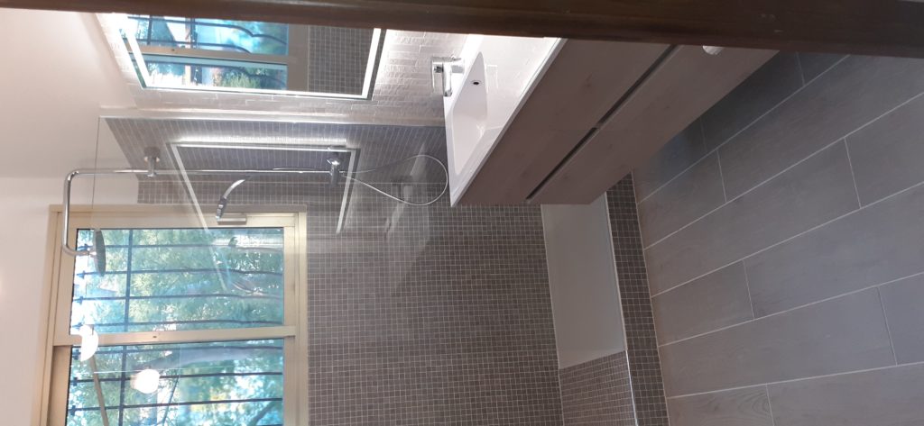Rénovation d’un coin douche Rénovation d’une salle de bains complète avec carrelage au sol et coin douche